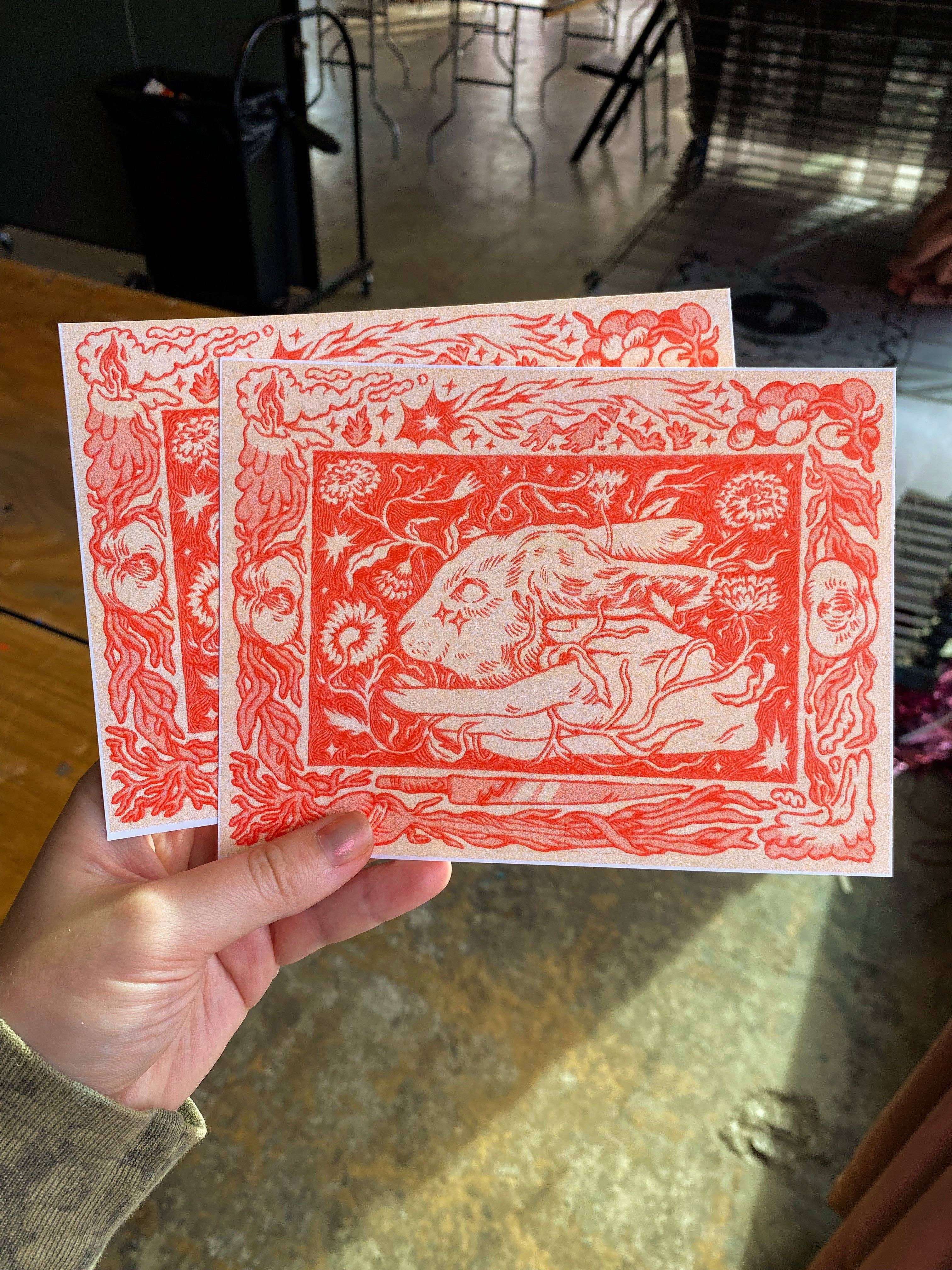 Wood-Burned Rabbit Riso Print, Ash Rudolph
