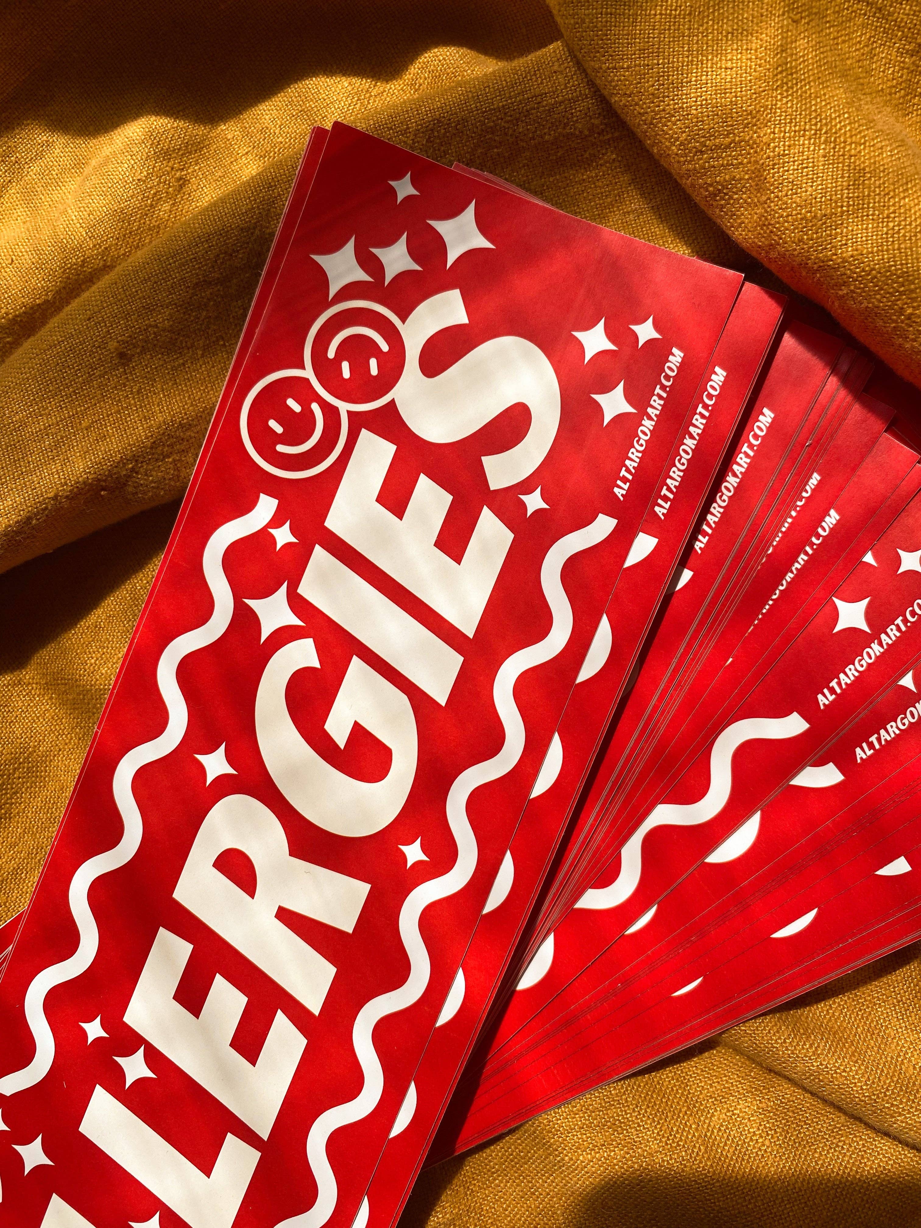 Let the world know you take your allergies seriously with this eye-catching "I Have Allergies" bumper sticker! Its bold colors and fun font will grab everyone's attention and make you the envy of the allergy crowd.